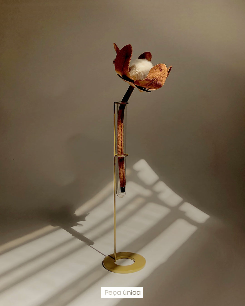 Apaixonada por artesanato e arquitetura, criou a Coleção Plantae — esculturas inspiradas na exuberância da flora brasileira. Em veludo vibrante, suas plantas e flores unem inovação, originalidade e sensibilidade estética.